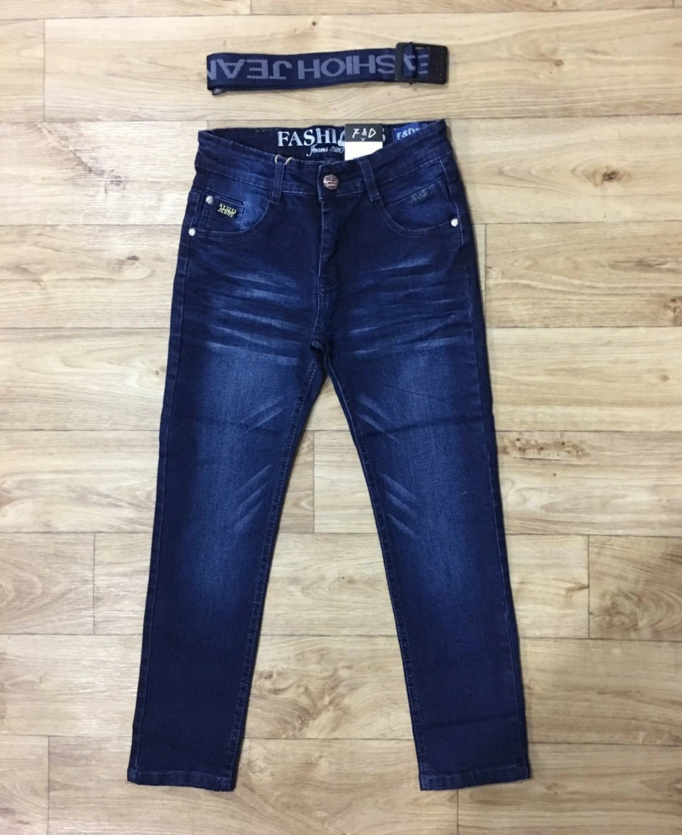 Брюки из плотного джинса для мальчиков от фирмы F&D. Модель заужена книзу, спереди и сзади с карманами.