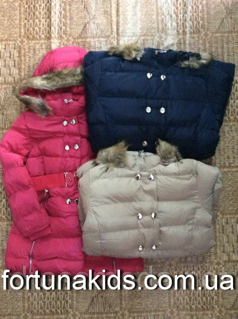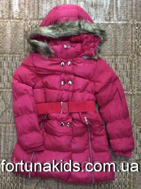 Пальто зимние для девочек от Seagull. Модель под пояс, с капюшоном
