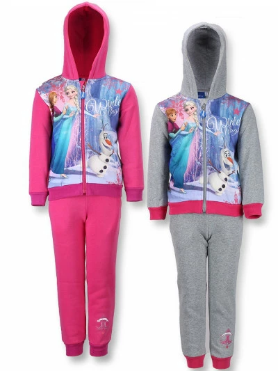 Спортивный костюм для девочек хорошего качества от фирмы Disney . Модель из плотного трикотажа, с начесом,с вшитым капюшоном, кофта и брюки с карманами. Рукава на манжетах. Брюки прямые, низ на манжете. В комплекте с регланом.